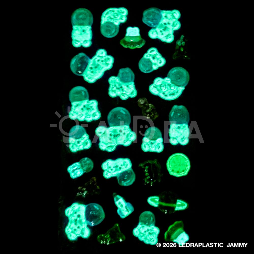 ぷくっとした立体感のあるジェリー素材に、全柄ラメ入りでキラキラかわいい仕上がり。