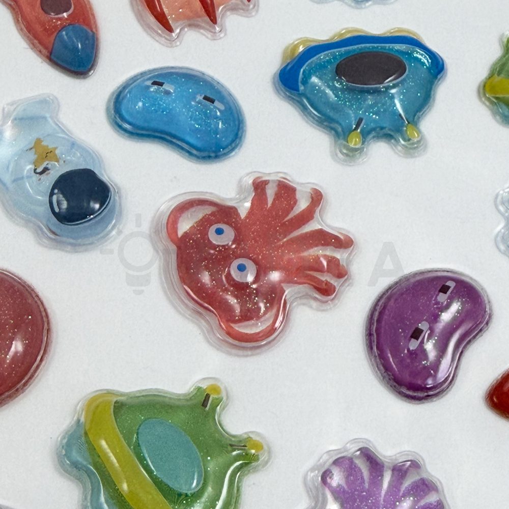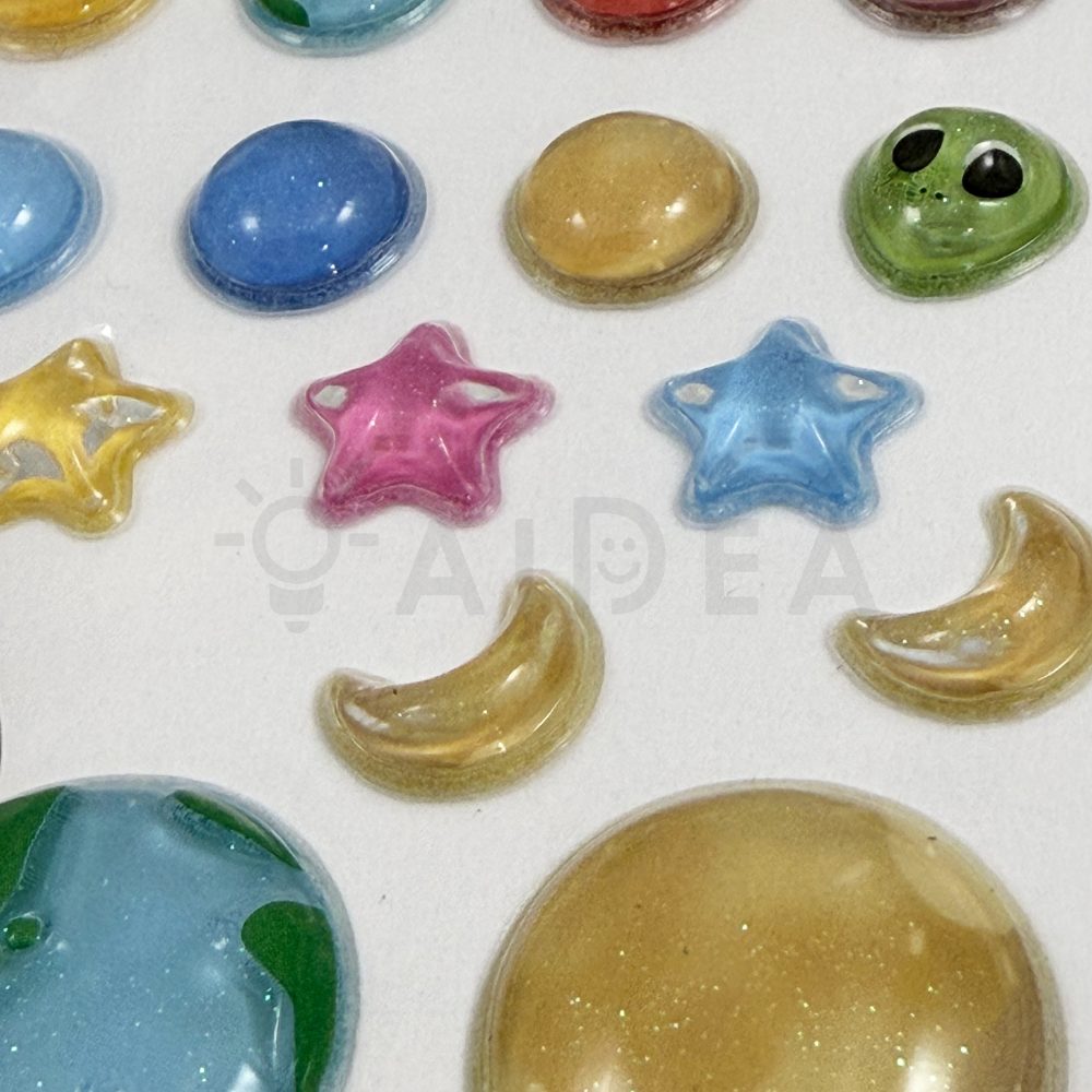 株式会社アイデアのオリジナル商品。PVCを利用した立体的で透明感のあるシールです。