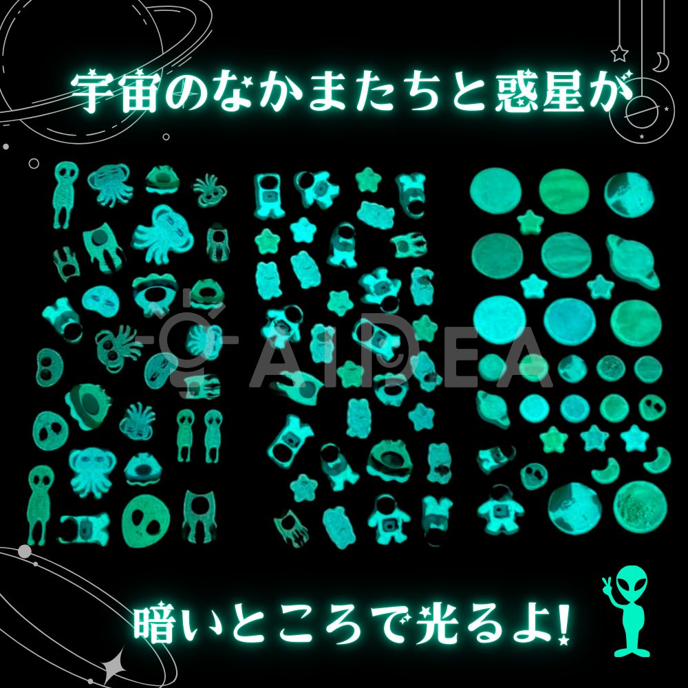 【イラストレーター yui がデザインする宇宙をイメージした蓄光シール】