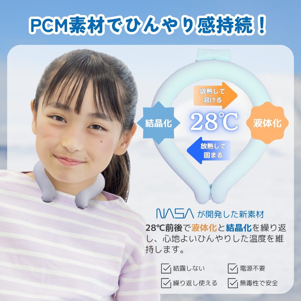 28℃で自然に凍ったり溶けたりする【PCM】を採用したひんやりアイテム。